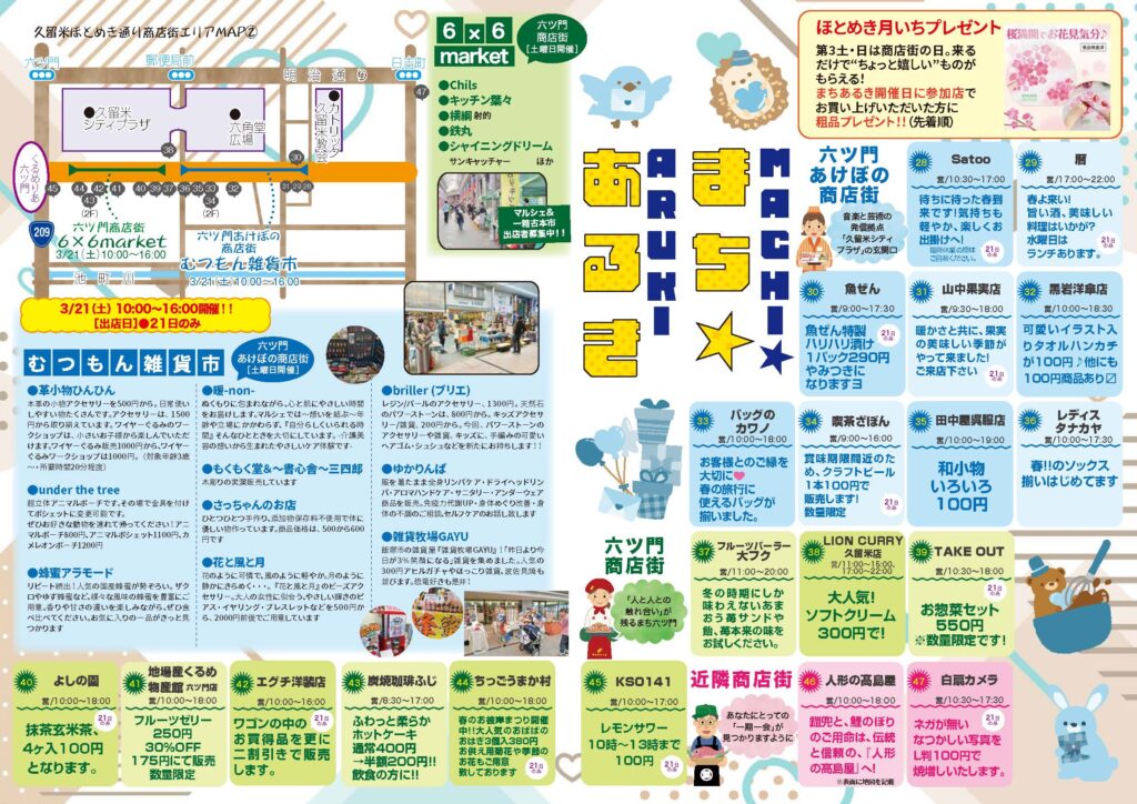 - MAP②: 六ツ門商店街、6×6market、六ツ門あけぼの商店街方面